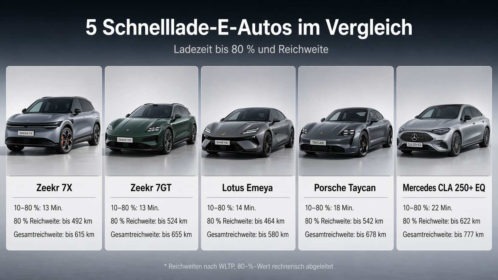 Entscheidend ist nicht nur, wie schnell ein Modell auf 80 Prozent kommt. Wichtig ist auch, was danach an Reichweite zur Verfügung steht. Genau in dieser Kombination stechen derzeit einige Modelle besonders hervor.